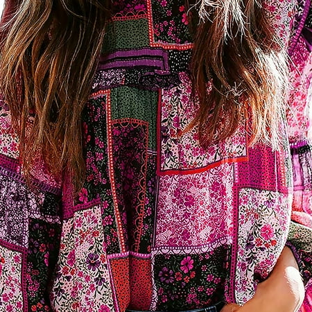 Polyester Woman Shirt Round Neck Pleated Casual Stylish Hand Washable Bohemia Blouse Daily Outtings Office Shirts Clothing Rose Red S Walmart Canada